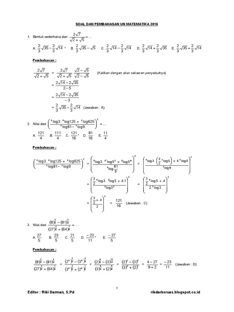 Soal un sma dan pembahasannya, soal un matematika sma, soa. Plus trik superkilat dan logika praktis. Un 2011 paket 46 24a −7 b −2 c . Pembahasan soal matematika un sma ipa 2010/2011 berbagi dan belajar: Pembahasan soal un matematika sma program ipa 2012 paket d46 zona d. Naskah soal un matematika smp 2011 (paket 15) pembahasan soal . Berikut adalah hasil pembahasan soal un tahun 2010/2011 (paket soal yang diujikan di kota yogyakarta) oleh tim pembahas pppptk matematika. E 12z 2 arsip soal un matematika ipa. Ujian nasional sma ips soal dan pembahasan matematika genius edukasi 2010/2011. Trik superkilat un matematika ipa sma 2011 paket 12. Un matematika sma 2011 paket 12. Kumpulan soal un fisika sma (2008, 2009, 2010 & 2011) pdf.